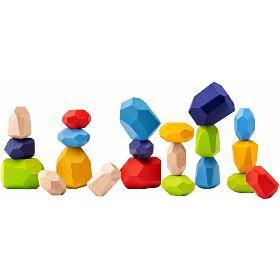 Děti mají za úkol postavit na sebe co nejvíce dřevěných kamenů tak, aby z nich věž nespadla