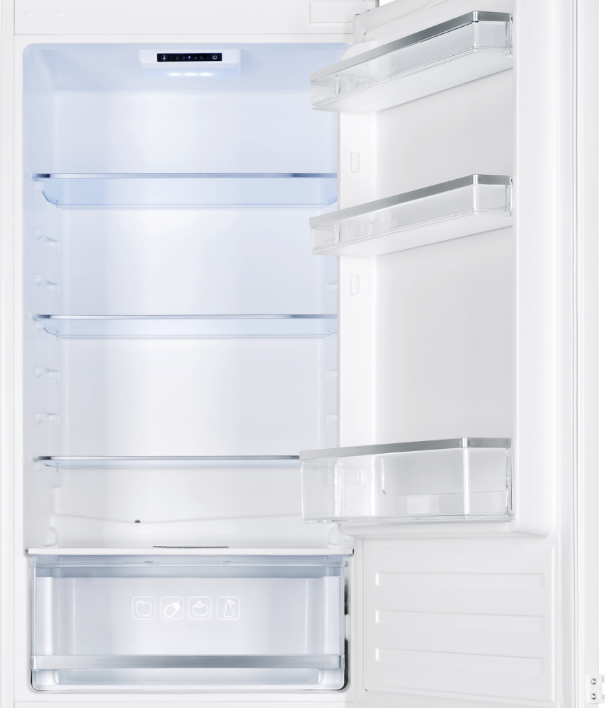 Chladicí část: Objem 195 l; 1 pevná police a 3 nastavitelné police z tvrzeného skla; 1 zásuvka na ovoce a zeleninu; LED vnitřní osvětlení; Ve dveřích velká přihrádka na láhve a 2 standardní přihrádky pro přehledné uspořádání potravin; Zásobník na vajíčka
