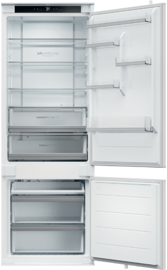 S technologií Air Surround proudí vzduch uvnitř chladničky jemnějším a šetrným způsobem. Díky speciálním bočním vývodům tento systém homogenně distribuuje studený vzduch obklopující potraviny v celém prostoru chladničky, čímž se zabrání přímému proudění na potraviny bez ztráty jejich hmotnosti a vysušení potravin. Díky tomu dokáže Air Surround zachovat u potravin jejich chuť, konzistenci a šťavnatost až o 99 % i po 7 dnech jako u prvního dne.
