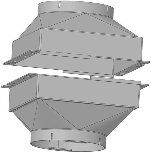 Univerzální filtrační box osazený filtrem Long Life. Instalace na potrubí nebo bezprostředně na vyústění z odsavače. Snižuje hlučnost odsavače, velmi účinná filtrace.