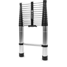 Jednoduše vysunete jen takový počet stupňů, který je aktuálně potřeba. Žebřík má celkem 13 příček s maximální délkou 3,8 m a nosnost 150 kg. Rozteč příček je 29 cm. Také je velmi nenáročný na skladování. Ve složeném stavu má rozměry 87 × 48 × 9 cm.