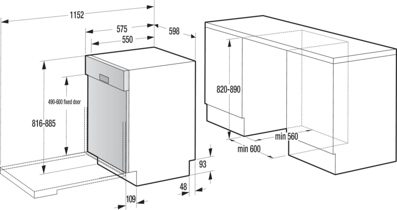 Rozměry (D׊×V): 575.0 mm×598.0 mm×816.0 mm