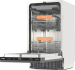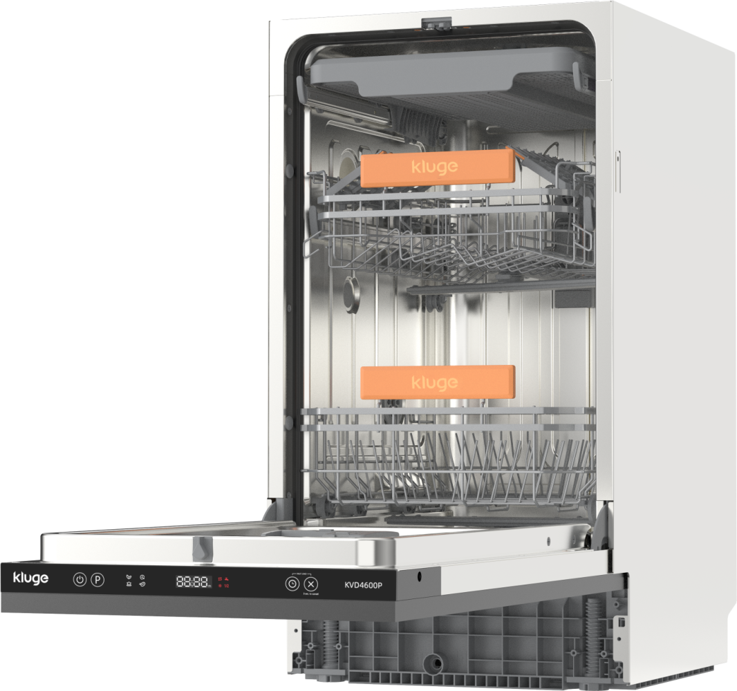 Plně vestavná myčka nádobí s kapacitou 11 sad nádobí a šířkou 45 cm, ideální do menších kuchyní; Mezi hlavní vlastnosti patří 4 mycí programy a 4 teploty; Bílý LED displej s dotykovým ovládáním; Invertorový motor; Odložený start až o 24 hodin; Vnitřní uspořádání nabízí třetí horní zásuvku na příbory a nastavitelný horní koš; Pro úsporu vody a energie můžete zvolit mytí v horním, spodním nebo obou koších; Sklopné hroty ve spodním koši; Pevná instalace dekoračních dvířek; Výška dekoračních dvířek 60 ~ 72 cm; Hlučnost 47 dB(A); Energetická třída D; Spotřeba energie je 70 kWh na 100 cyklů a vody 9,8 l na cyklus. Rozměry (VxŠxH): 81,5 ~ 87,5 x 44,8 x 55 cm