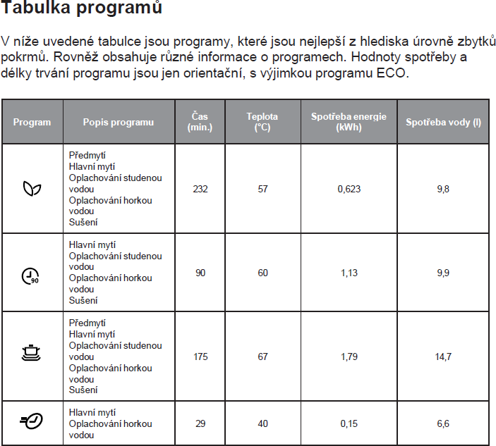 - Spotřeba vody na 1 cyklus (program ECO): 9,8 l