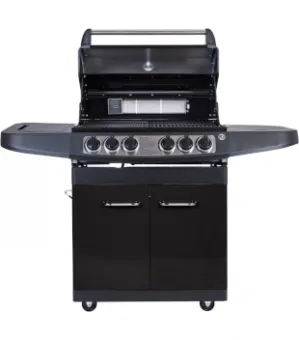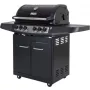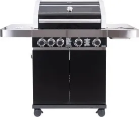Základem grilu jsou 4 vysoce kvalitní plynové hořáky z ušlechtilé oceli č. 304. Integrované zapalování odvádí spolehlivě svojí práci. Pro provoz grilu je vhodná plynová bomba velikosti 5 kg, která se snadno vmístí do skříňky pod grilem. Díky poklopu vybavenému teploměrem můžete teplotu v průběhu přípravy vašich pokrmů kdykoliv zkontrolovat. Rošt i grilovací tál jsou opatřeny smaltovanou povrchovou úpravou, která zaručuje velmi dlouhou životnost. Na pravé straně grilu se nachází přídavný hořák, který je vhodný pro přípravu omáček nebo udržení hotových pokrmů v ideální teplotě. Na levé straně potom najdeme praktický odkládací prostor. Plynová láhev je uzavřena ve spodní skříňce. Transport grilu výrazně ulehčí pojezdová kolečka s možností aretace.