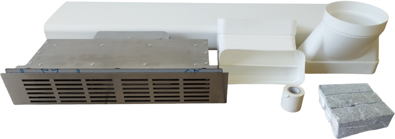 Recirkulační sada s uhlíkovým filtrem a sadou potrubí pro indukční desku s integrovaným odsavačem model Wizard CDB8001CC. Součástí sady jsou vývodky, koleno, ploché vedení (extra tiché a s min. ztrátou výkonu, německé značky NABER), hliníkový box pro filtr s mřížkou do soklu, těsnící páska a 9 komorový Long Life uhlíkový filtr.